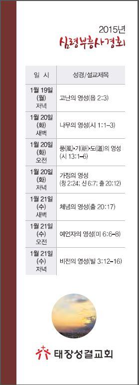 태장성결교회 부흥회 1월 19일(월)저녁~21일(수)저녁
